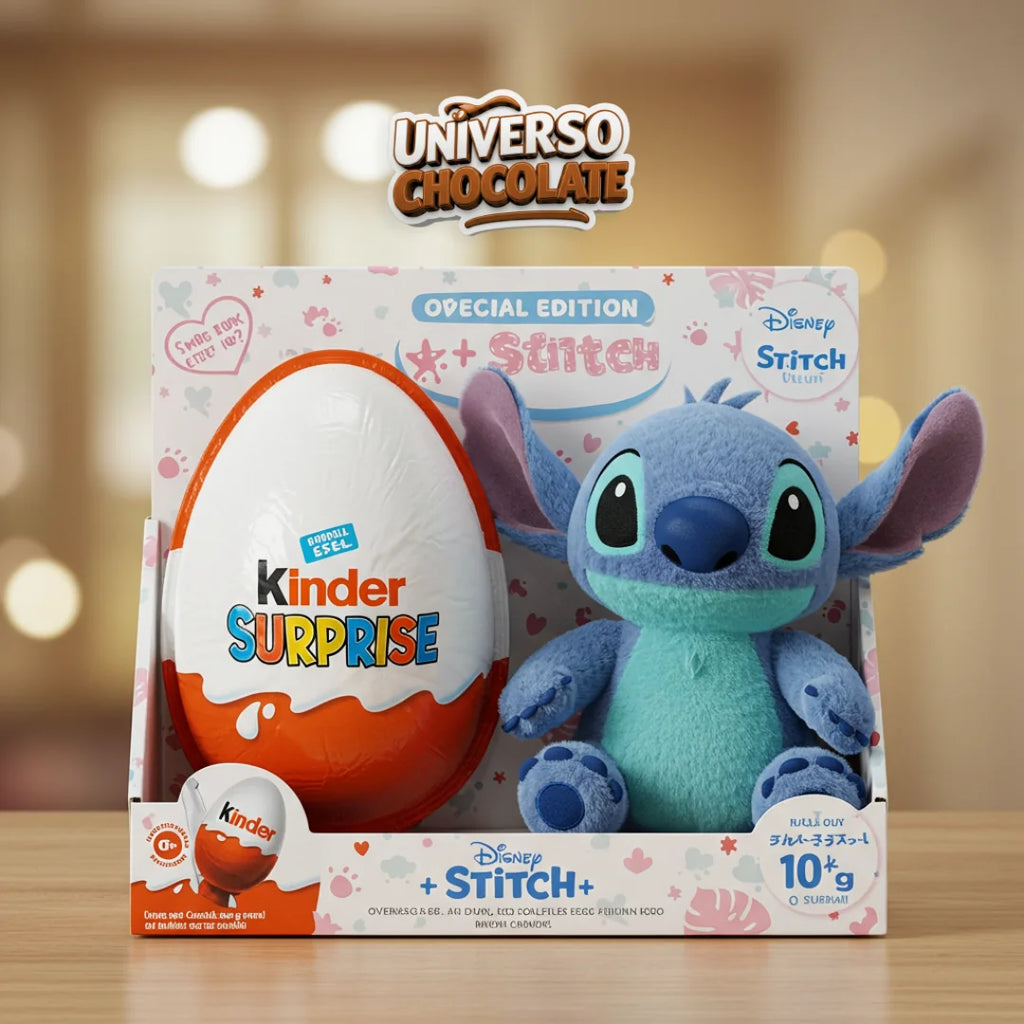 O clássico sabor do chocolate Kinder que todos amam, agora com uma surpresa incrível diretamente do Japão: ummini Stitch colecionável super fofinho!